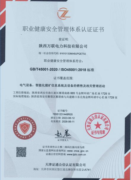 职业健康安全管理体系认证证书