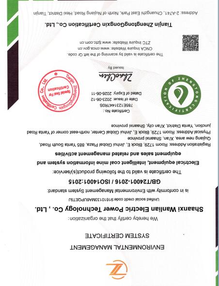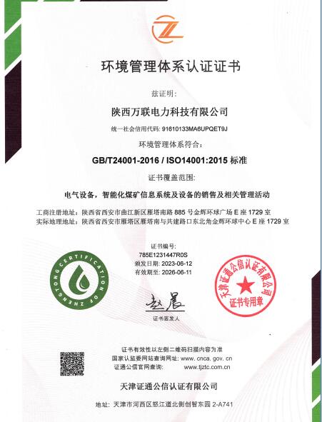 环境管理体系认证证书
