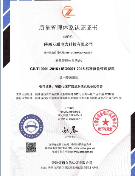 质量管理体系认证证书